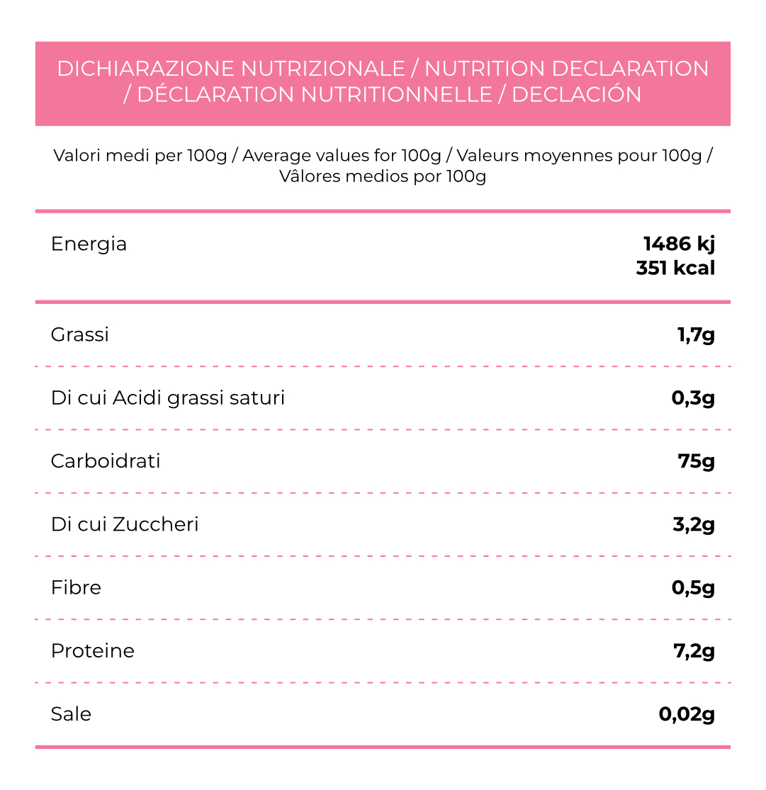 Il riso è confezionato in un tubo pensato per proteggere il prodotto e mantenerlo stabile nel tempo. La struttura combina un fondo in metallo che dà solidità, un corpo in cartone riciclato e una banda stagnata interna che scherma il riso da luce e umidità. L’atmosfera modificata preserva le qualità del chicco e ne mantiene freschezza e profilo aromatico. La chiusura easy peel permette un’apertura immediata e può essere richiusa parzialmente grazie al tappo in plastica, rendendo il tubo funzionale anche dopo il primo utilizzo.